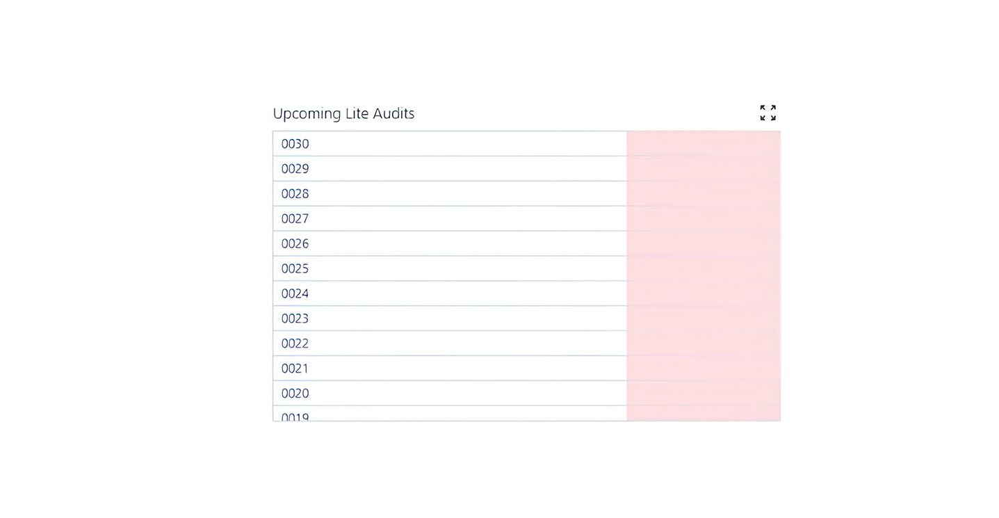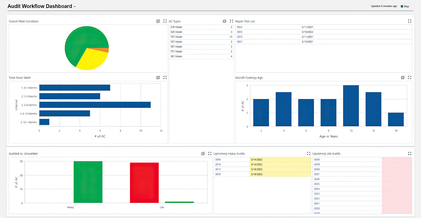 An audit flow dashboard provides an at-a-glance view of the overall fleet condition with specific detail on a coating’s age, upcoming audits and a repair list plan.